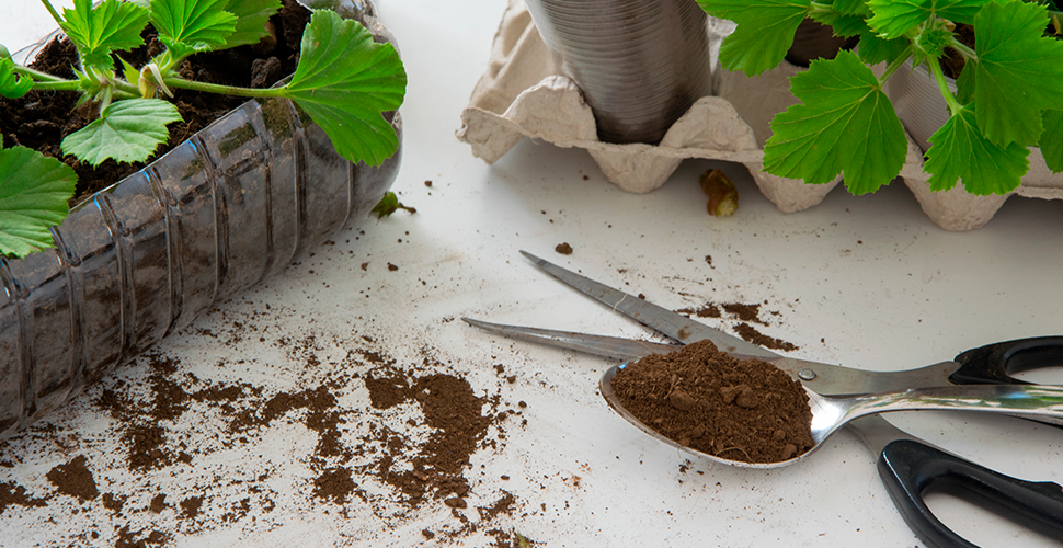 - Prepara el sustrato y siembra: Elige y elabora sustratos orgánicos según el tipo de plantas que instalarás en el huerto, esto es clave para proporcionar nutrientes, retener agua y asegurar un buen drenaje. Te recomendamos usar cáscaras de huevo trituradas para las hierbas, compost casero y cáscaras de plátano cortadas para las hortalizas de frutos, y borra de café seca para las plantas que prefieren sombra parcial. Al tener en cuenta este aspecto, llena la maceta con la tierra y el sustrato, luego entierra con cuidado las semillas.