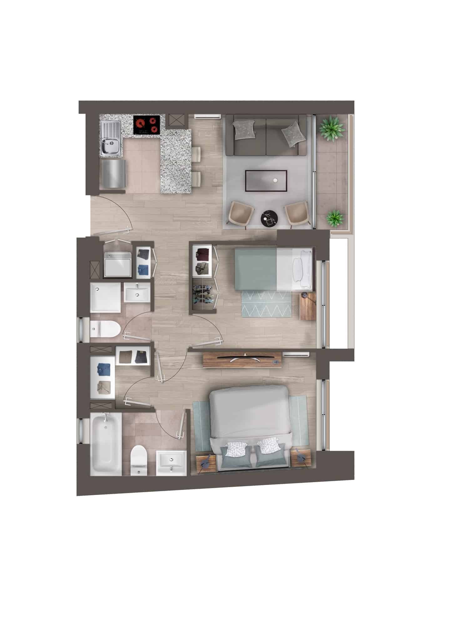 Nuestros departamentos en Estación Central están disponibles en diversas configuraciones, desde estudios eficientes hasta unidades de 1 y 2 dormitorios, adaptándose a diferentes necesidades y etapas de vida.