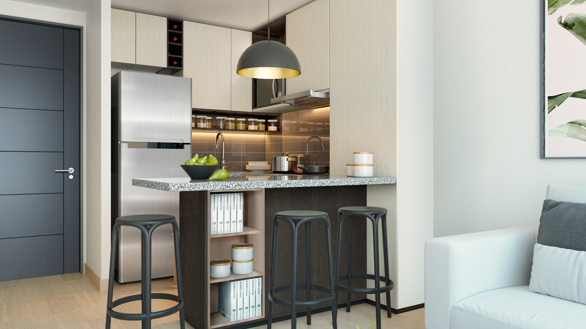 Cada departamento de Eco Estación en Estación Central destaca por su moderno diseño y sus terminaciones de alto estándar, que brindan un ambiente acogedor y contemporáneo. Los espacios interiores han sido optimizados para ofrecer la mayor amplitud y luminosidad posible.