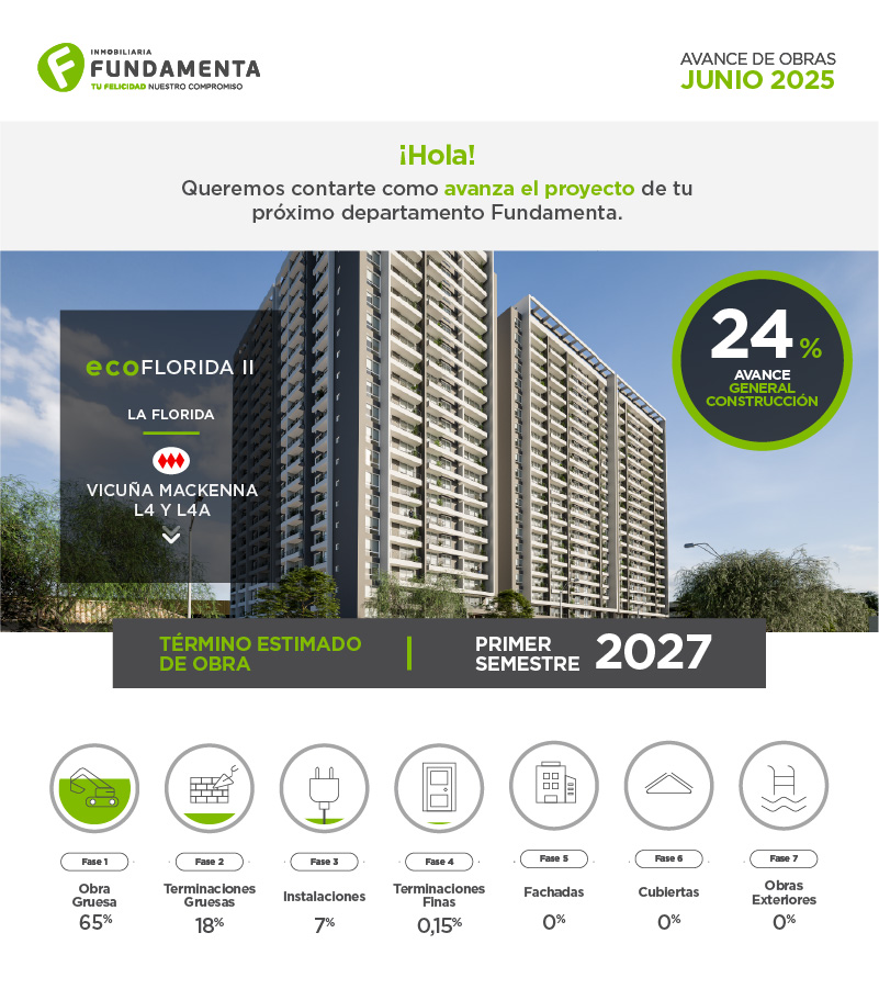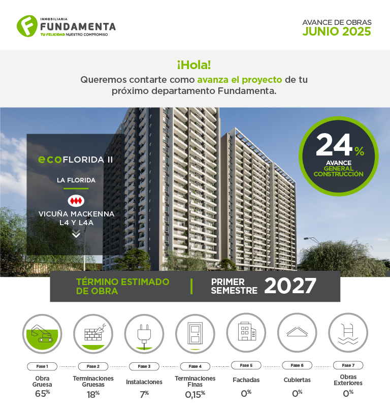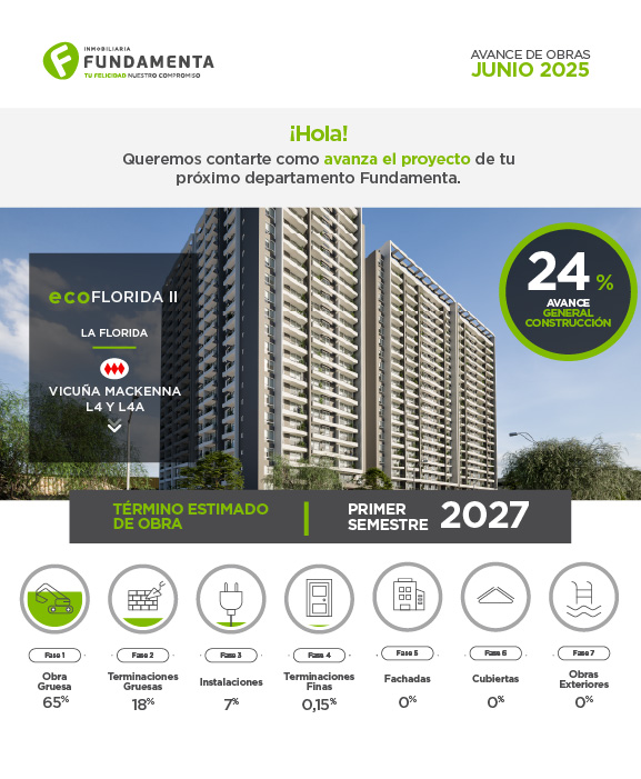 Descubre Eco Florida II, un imponente proyecto inmobiliario de 23 pisos que redefine la calidad de vida en la Región Metropolitana. Este es un proyecto único, ideal para quienes buscan departamentos en venta en La Florida y están explorando proyectos de departamentos en La Florida.