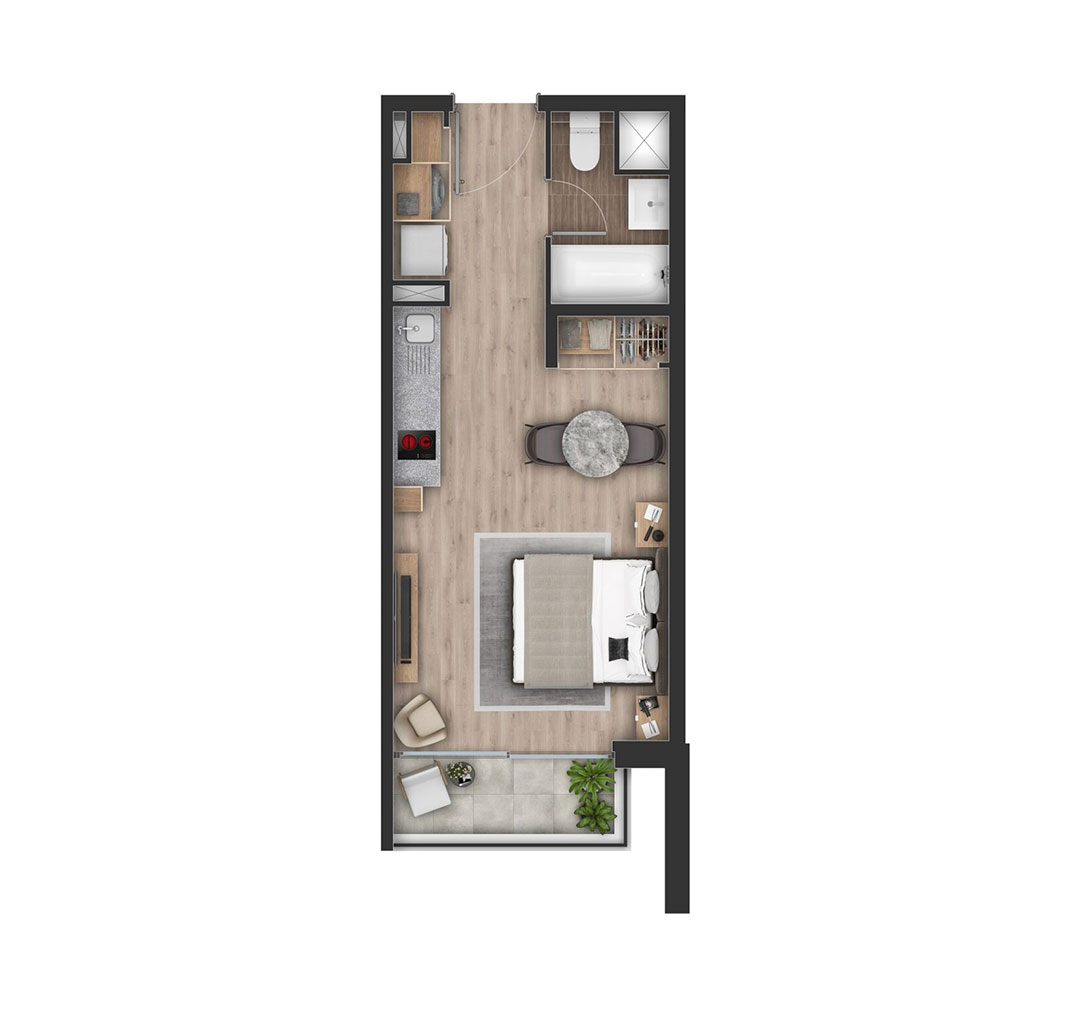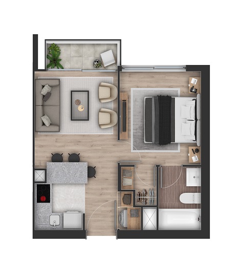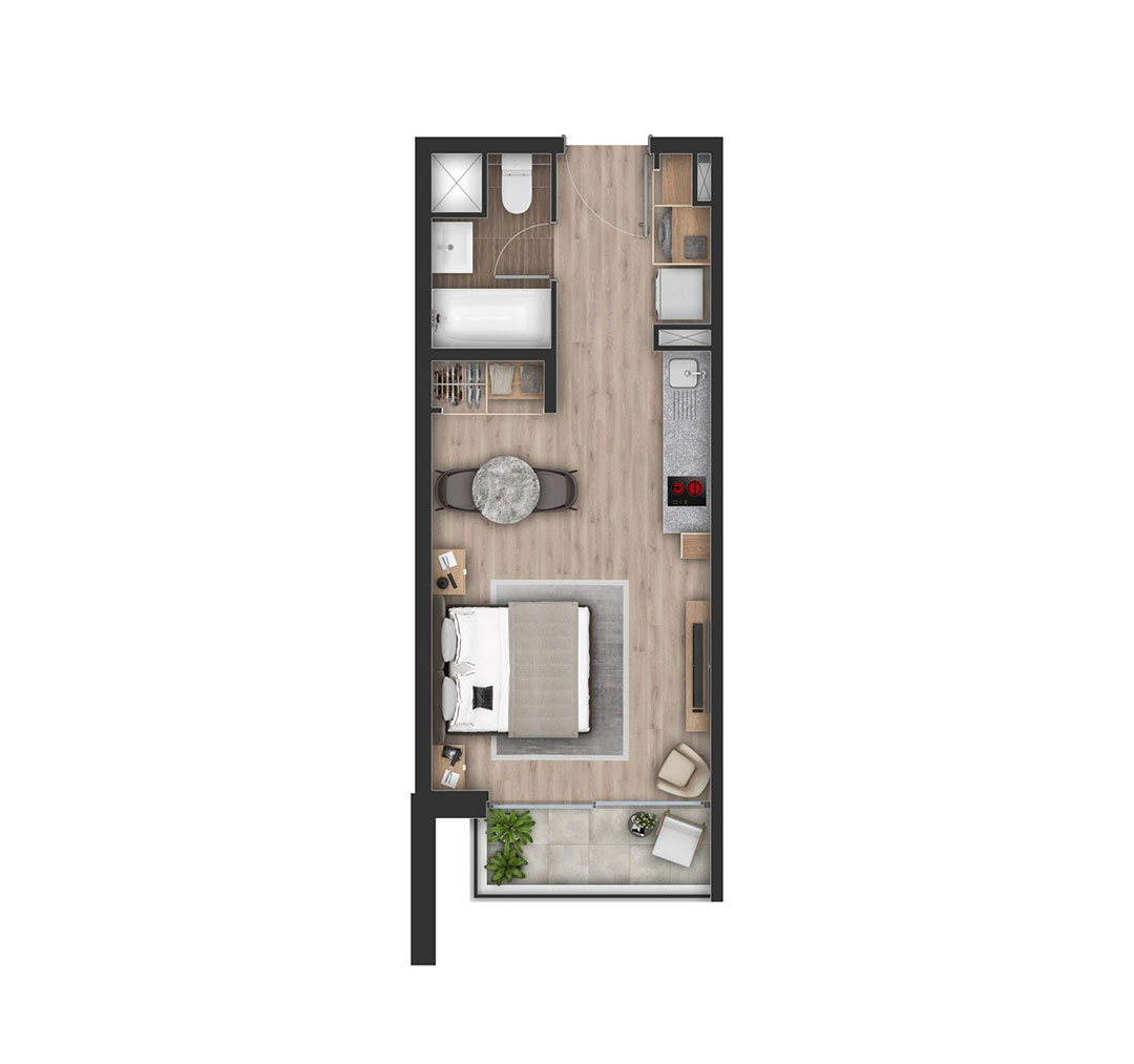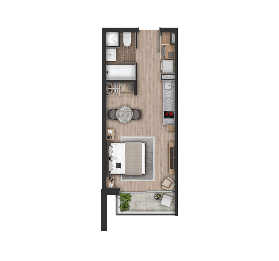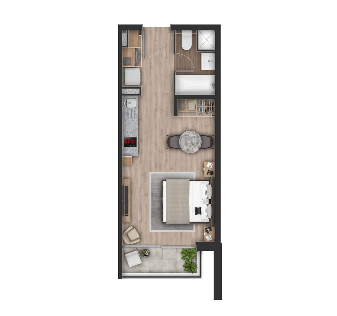 *Valor "desde" UF no incluye estacionamiento ni bodega, y corresponde al departamento Estudio, tipo BQ, unidad 418 torre B, con fecha 4 de marzo de 2025. Stock de 1 unidad. Confirmar con su ejecutivo las características del proyecto a la hora de reservar su departamento.