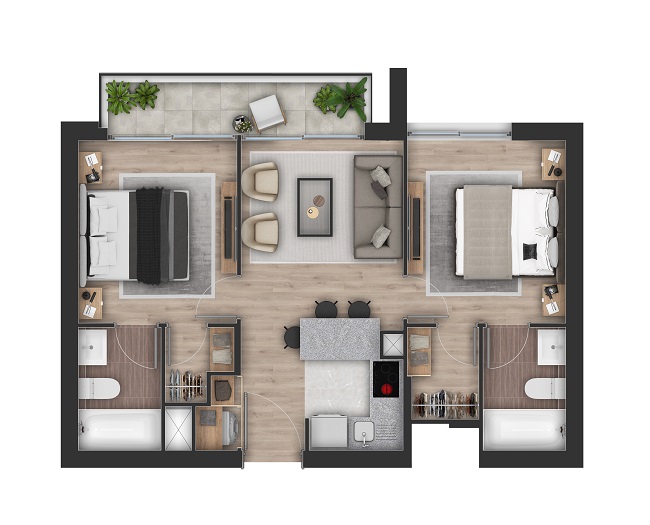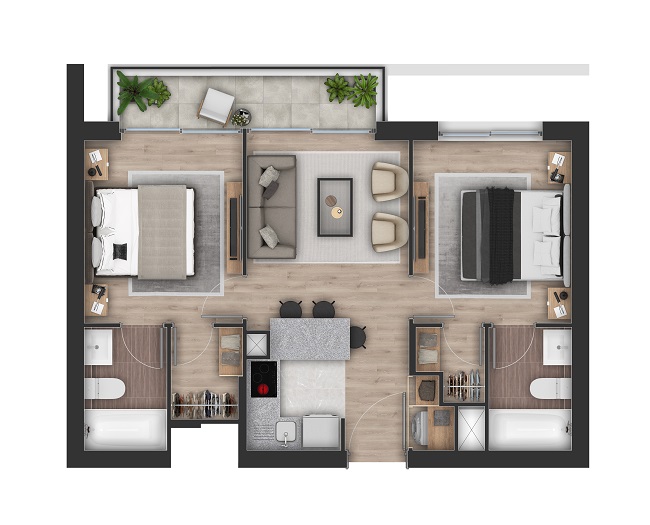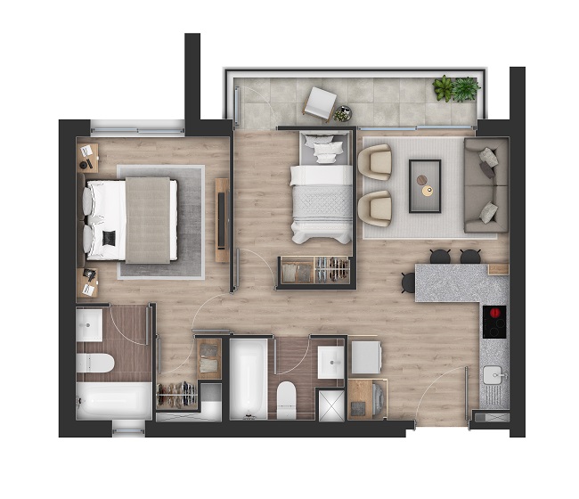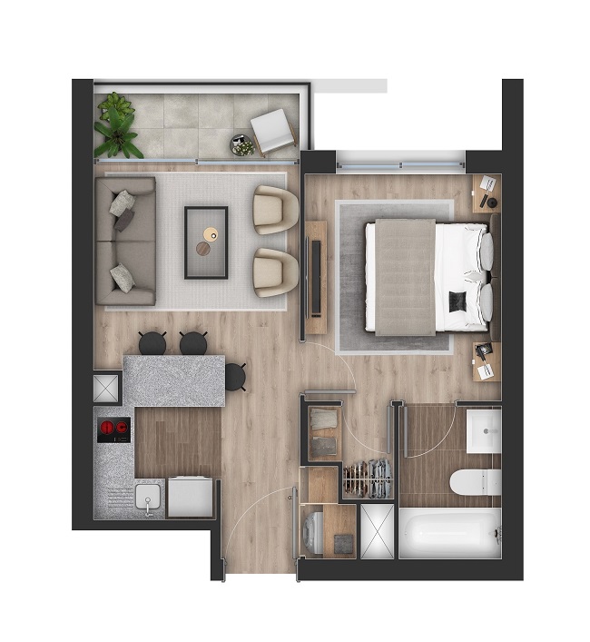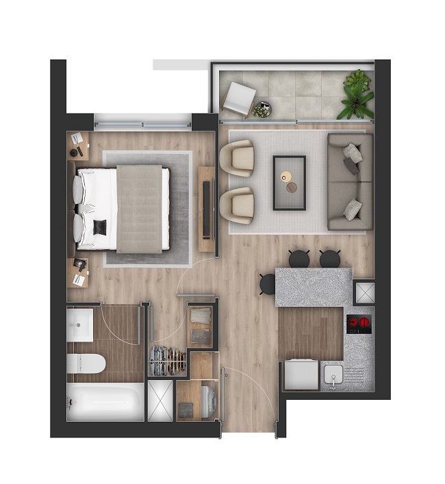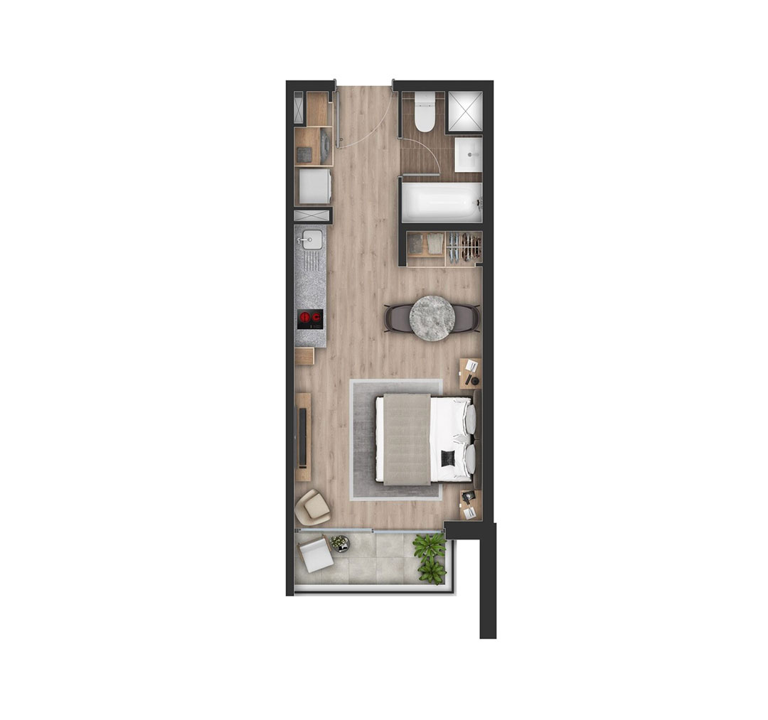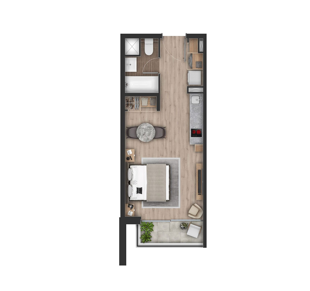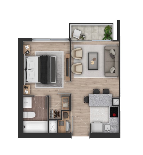 *Valor "desde" UF no incluye estacionamiento ni bodega, y corresponde al departamento Estudio, tipo BQ, unidad 418 torre B, con fecha 4 de marzo de 2025. Stock de 1 unidad. Confirmar con su ejecutivo las características del proyecto a la hora de reservar su departamento.