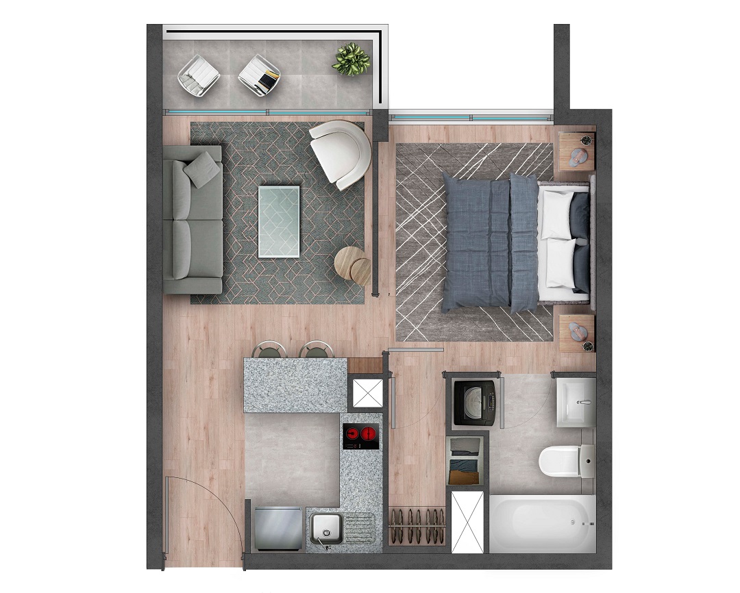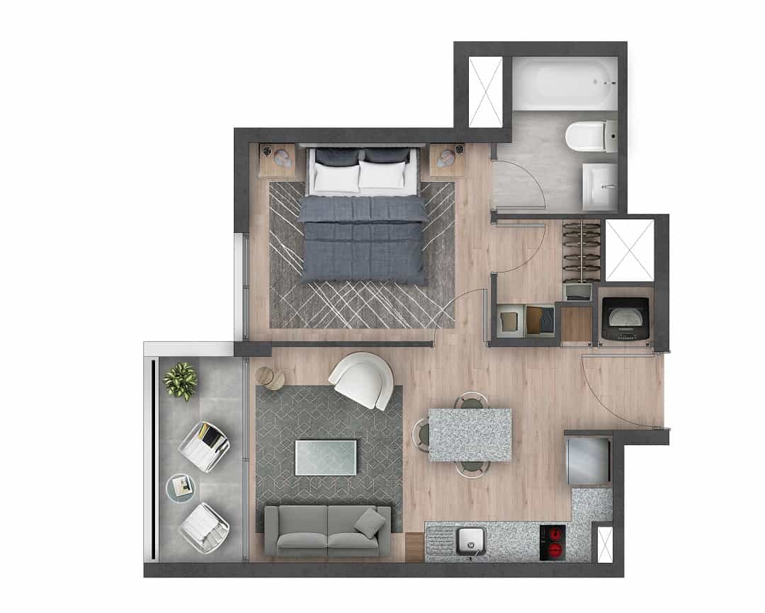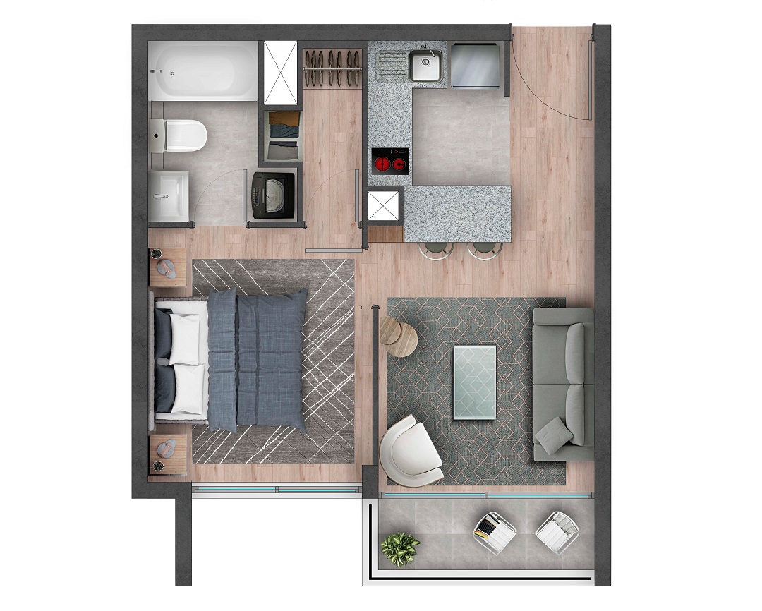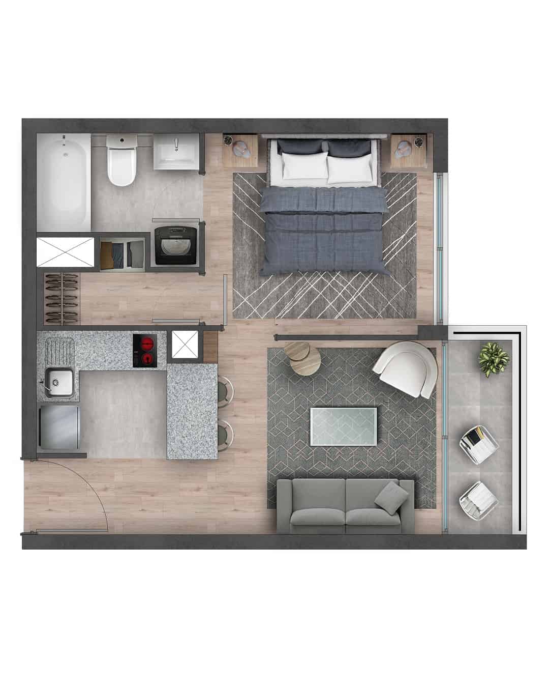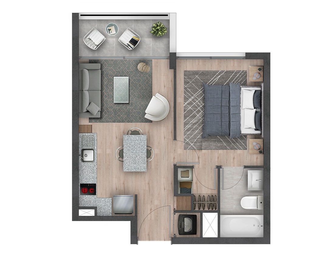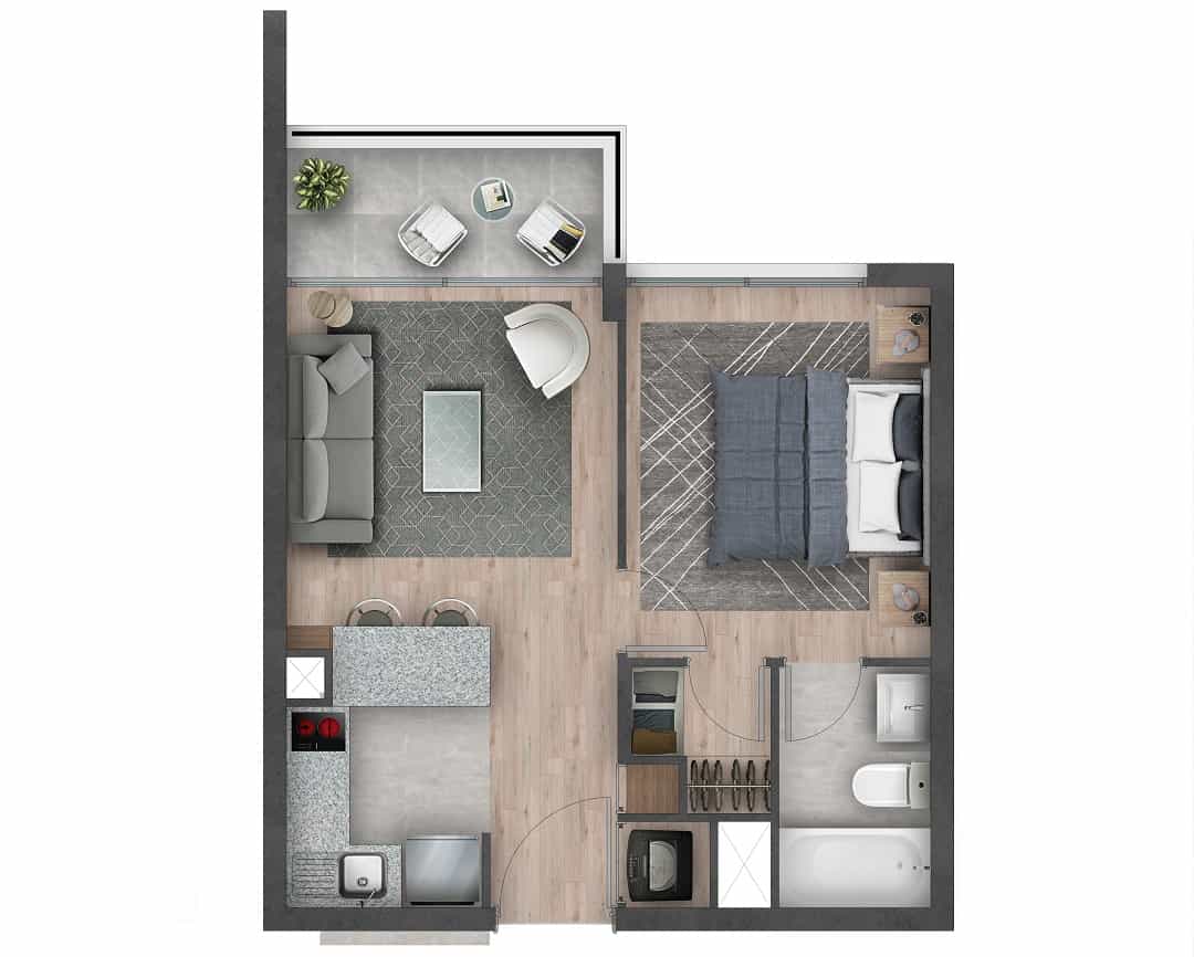 *Valor "desde" UF no incluye estacionamiento ni bodega, y corresponde al departamento Estudio, tipo DQ unidad 818-D, TORRE D, con fecha 4 de marzo de 2025. Stock de 1 unidad. Confirmar con su ejecutivo las características del proyecto a la hora de reservar su departamento.
