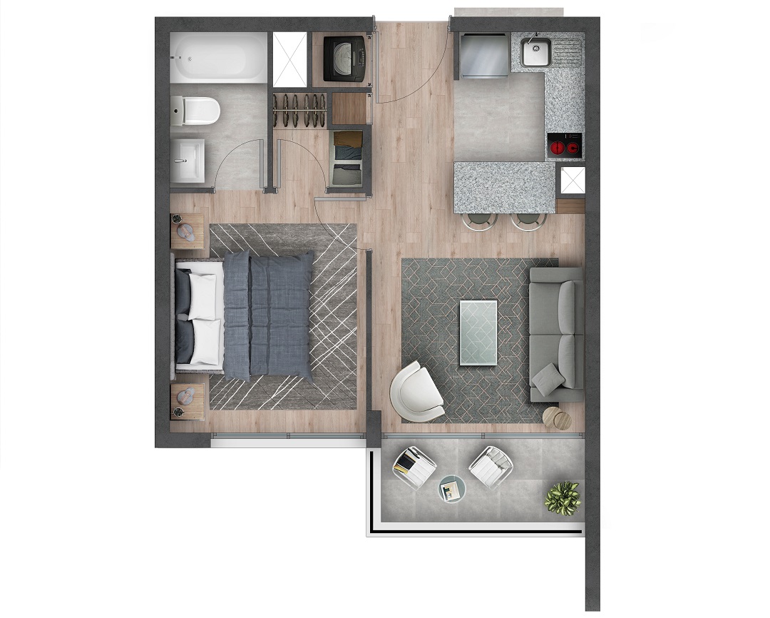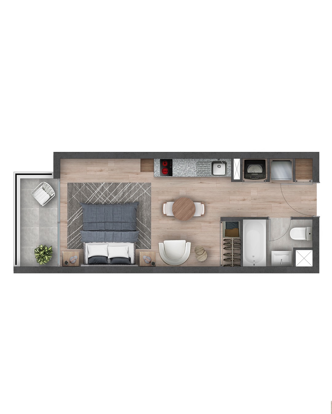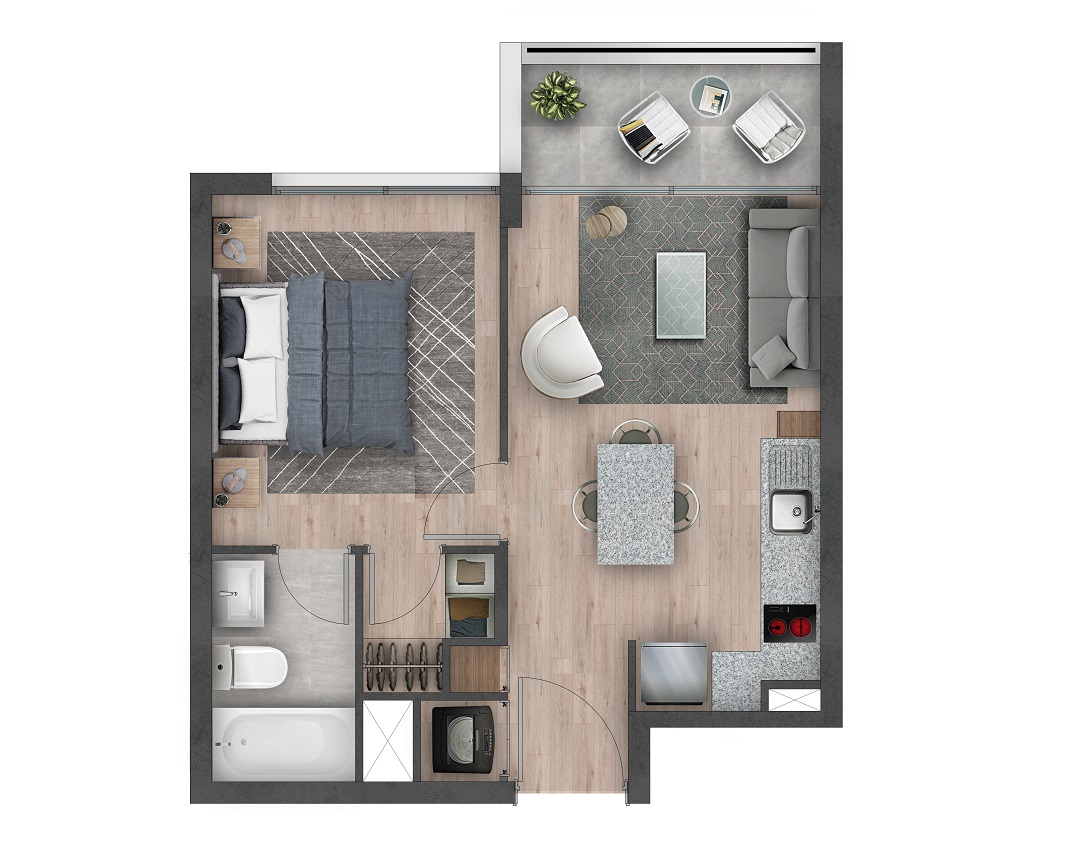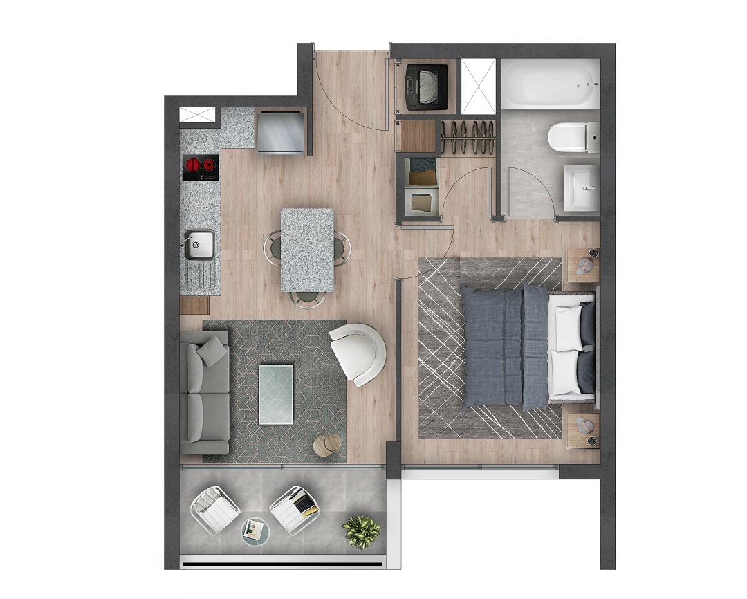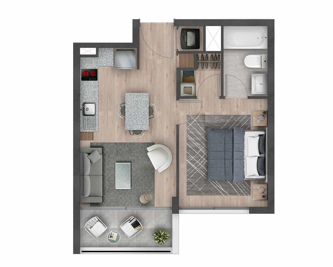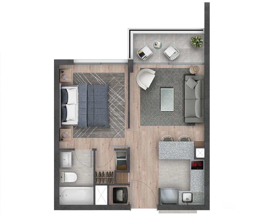 *Valor "desde" UF no incluye estacionamiento ni bodega, y corresponde al departamento Estudio, tipo DQ unidad 818-D, TORRE D, con fecha 4 de marzo de 2025. Stock de 1 unidad. Confirmar con su ejecutivo las características del proyecto a la hora de reservar su departamento.