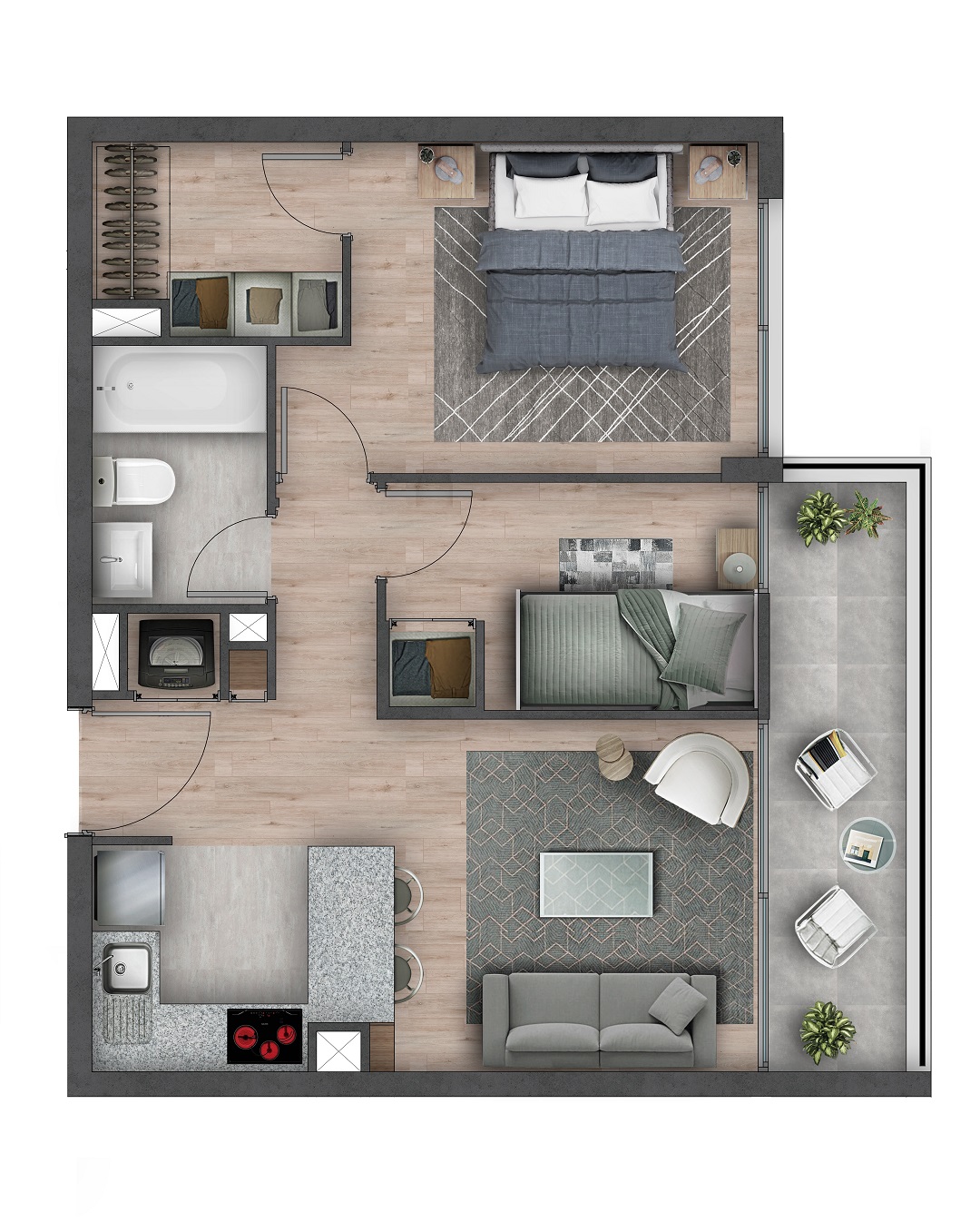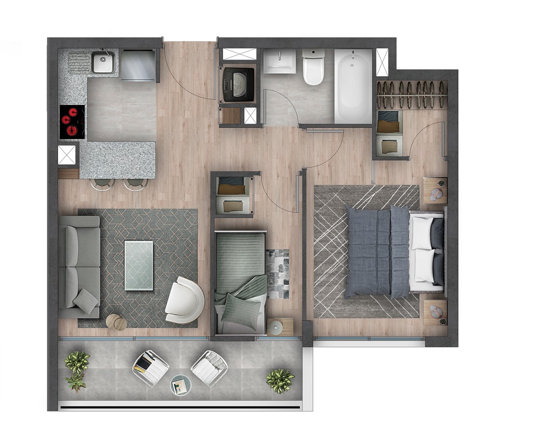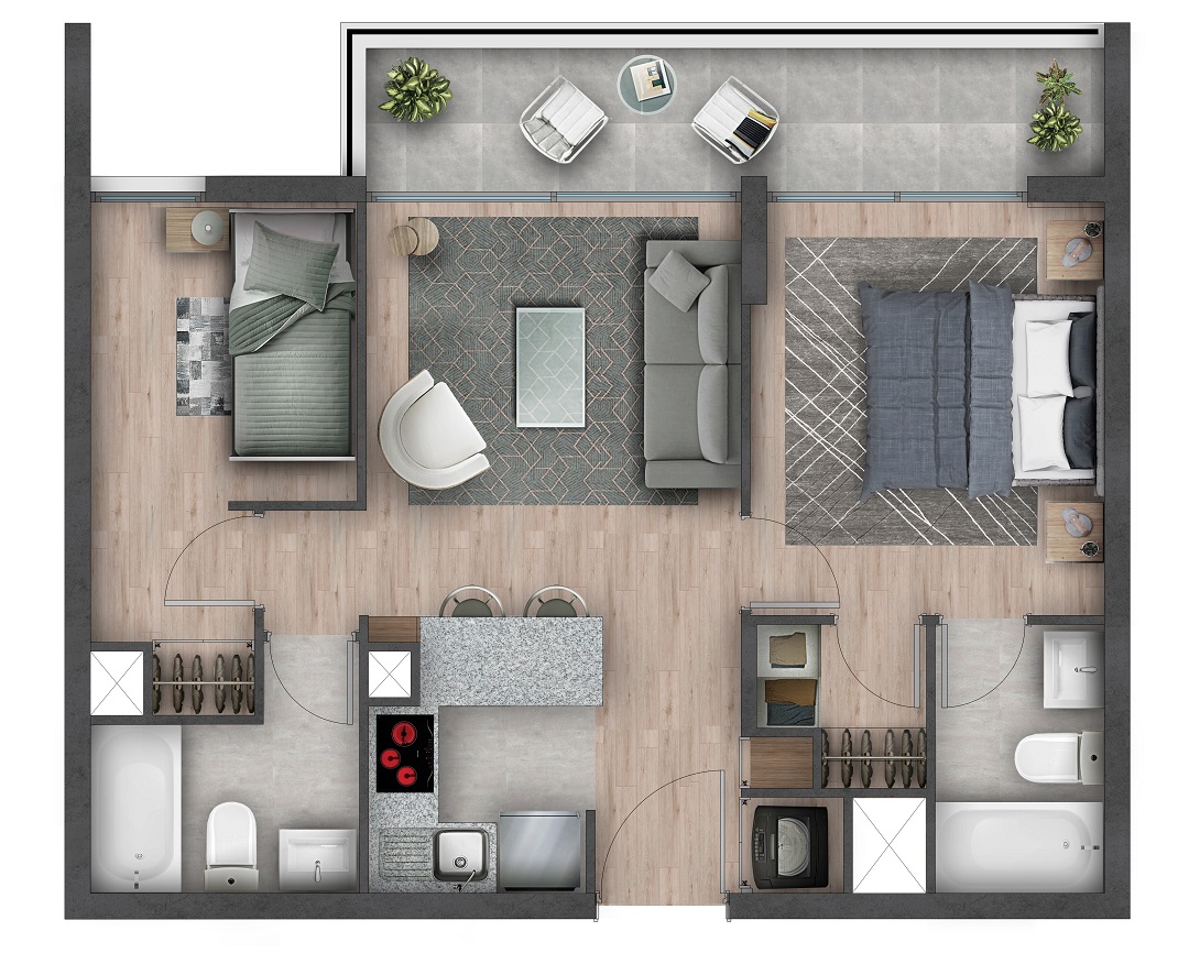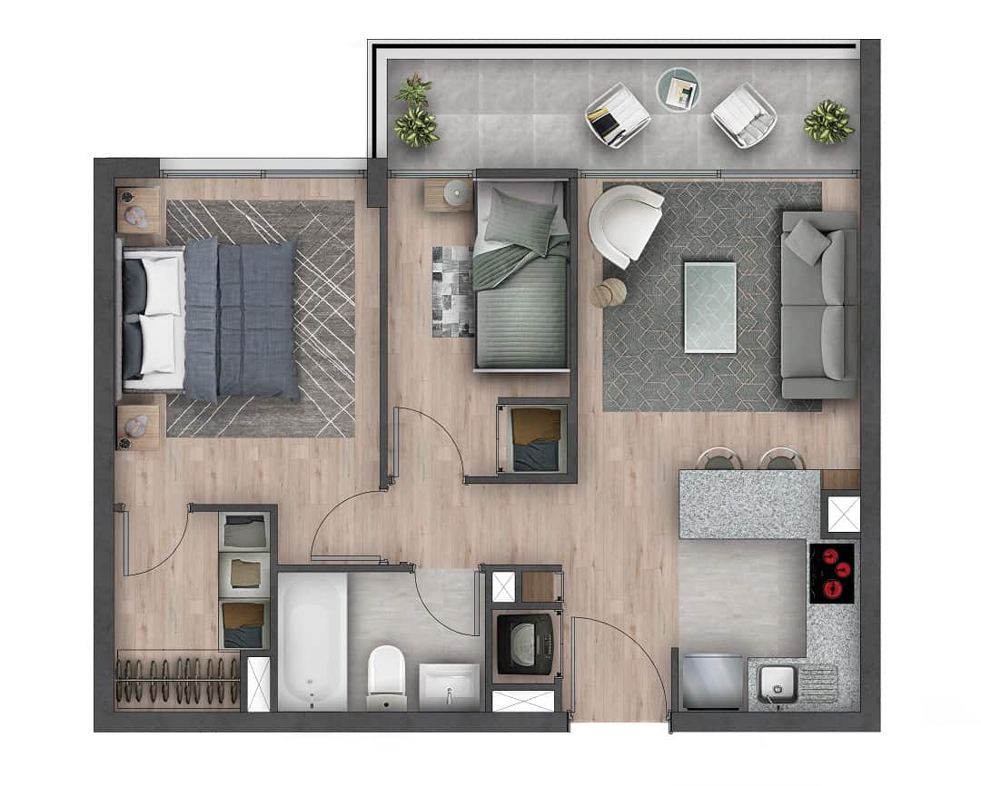 Sus “Espacios Más” otorgan al conjunto la mejor experiencia de vida en comunidad que hayas conocido. Los departamentos cuentan con el sello “Diseño Más“, que mejora significativamente la espacialidad, armonía y calidez de tu hogar.