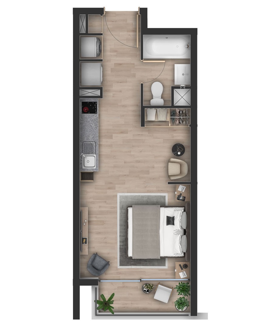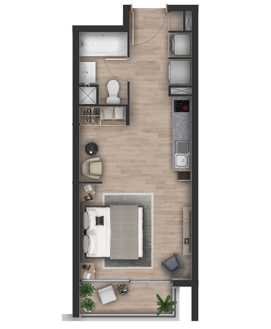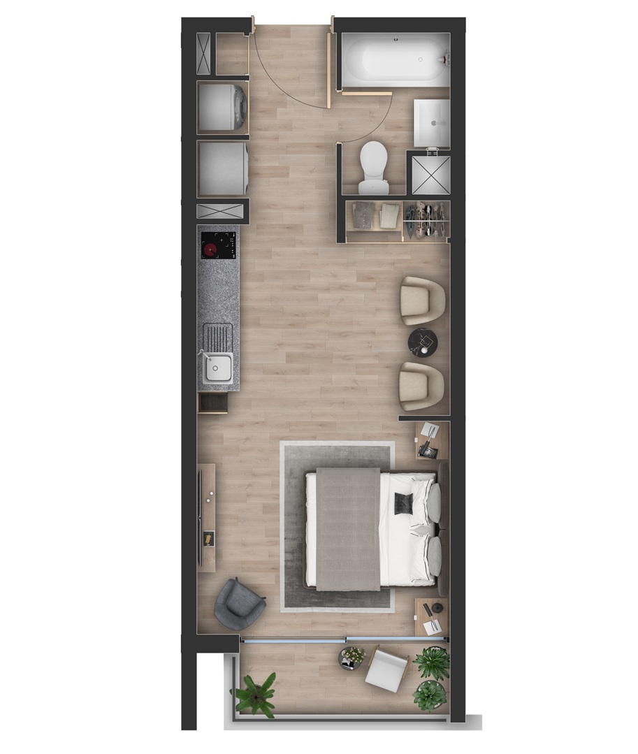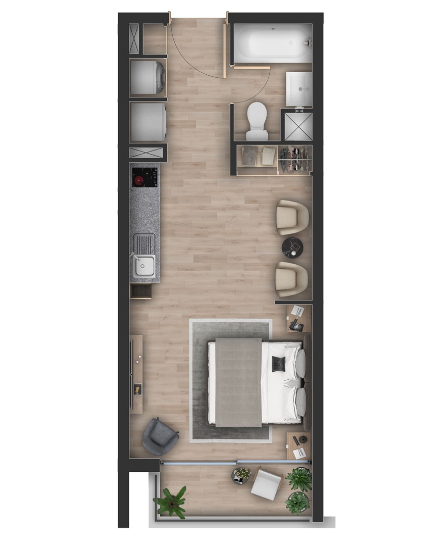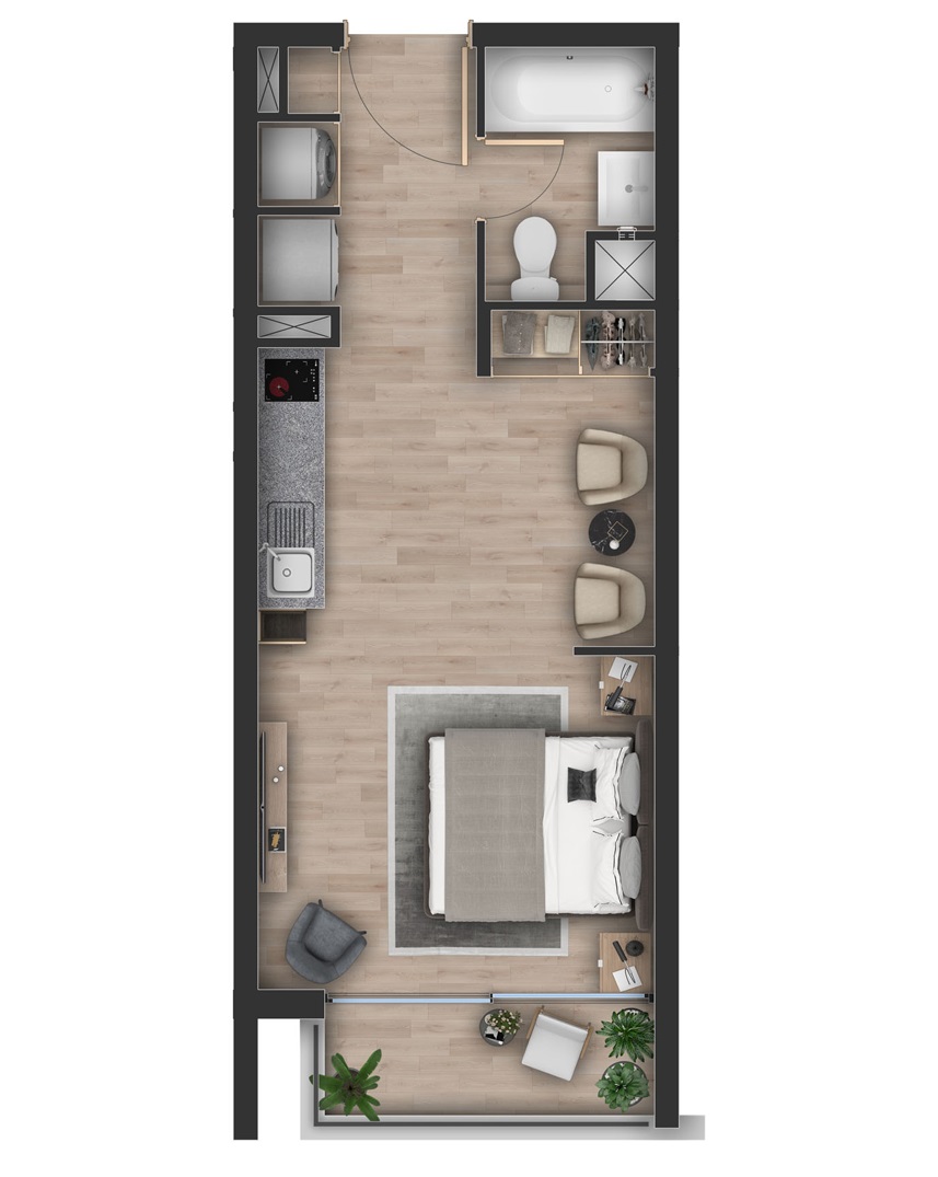*Valor "desde" UF no incluye estacionamiento ni bodega, y corresponde al departamento de tipo studio, unidad 325, torre A, con fecha 1 de abril 2025. Stock de 1 unidad. Confirmar con su ejecutivo las características del proyecto a la hora de reservar su departamento.