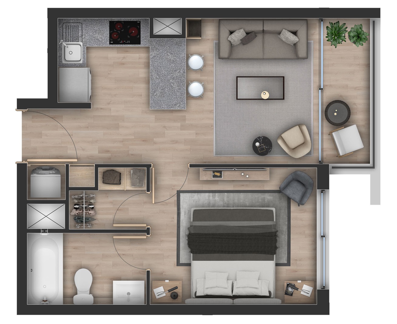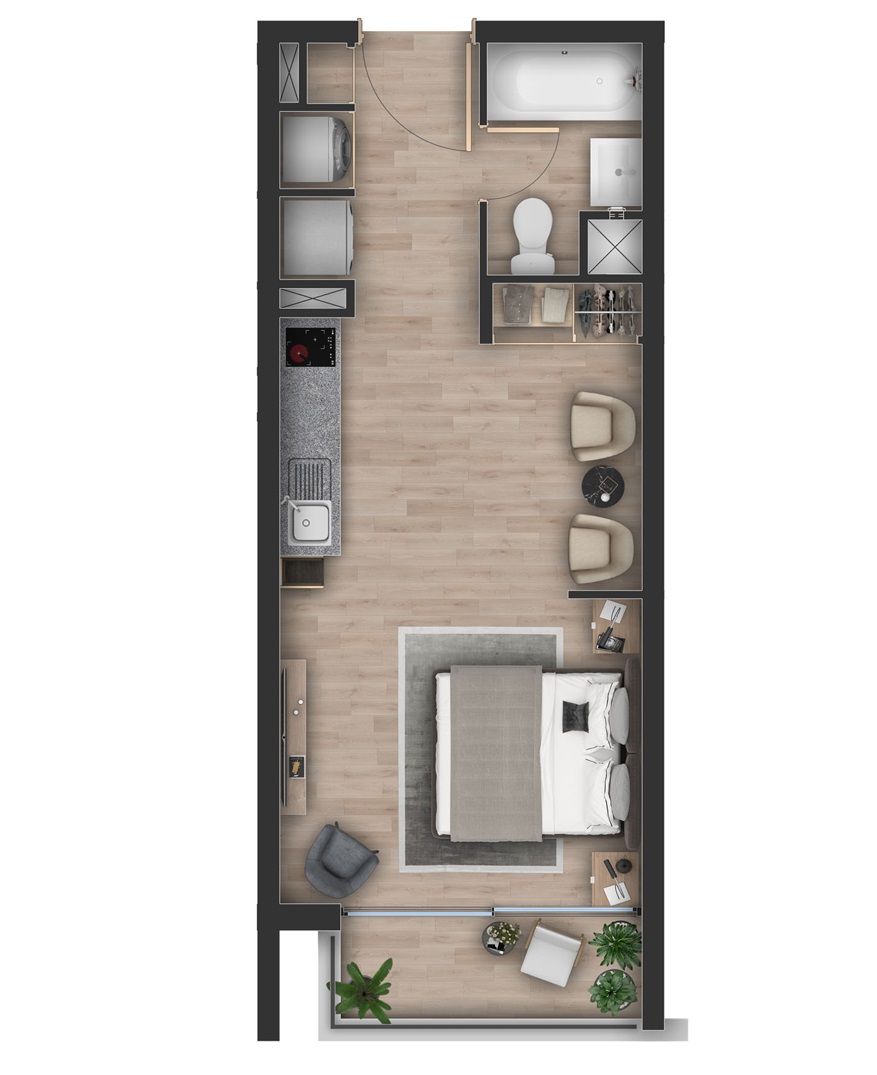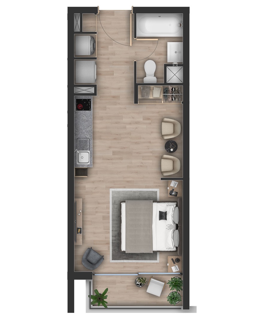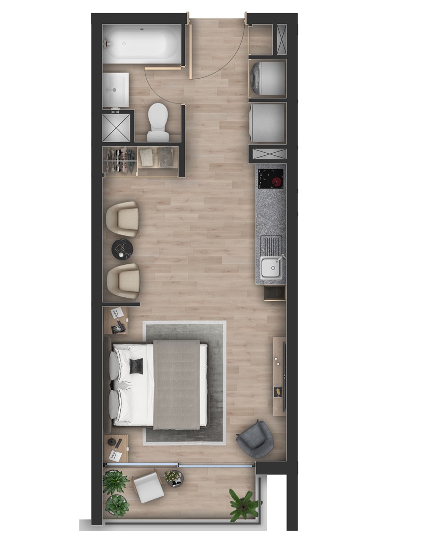 *Valor "desde" UF no incluye estacionamiento ni bodega, y corresponde al departamento de tipo studio, unidad 325, torre A, con fecha 1 de abril 2025. Stock de 1 unidad. Confirmar con su ejecutivo las características del proyecto a la hora de reservar su departamento.