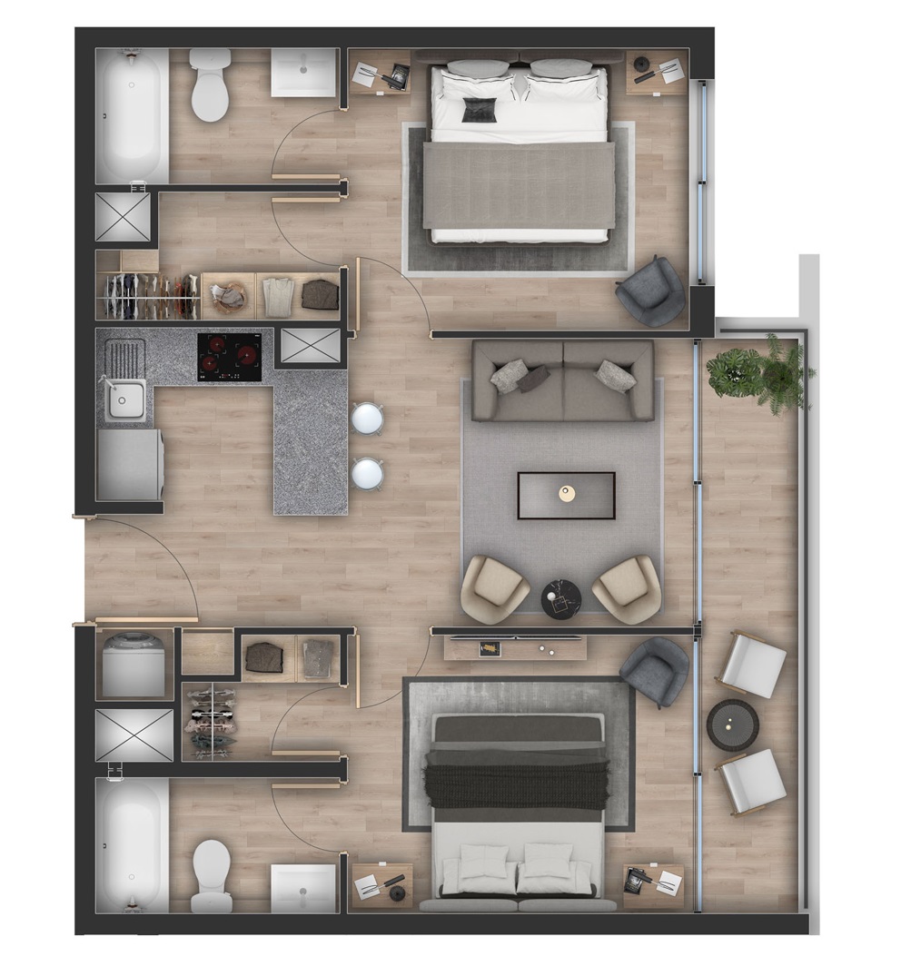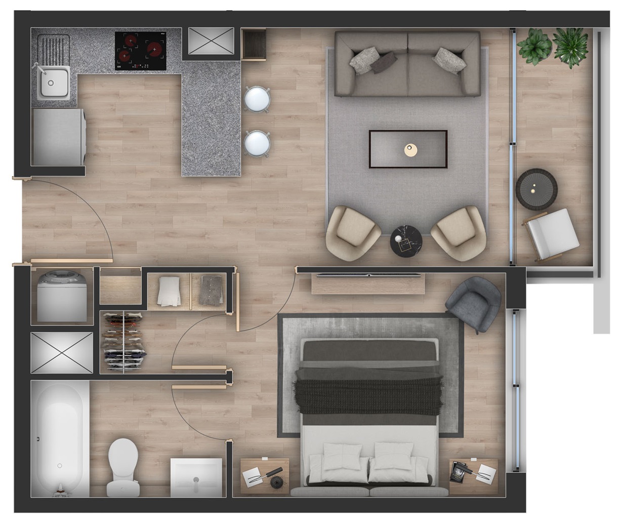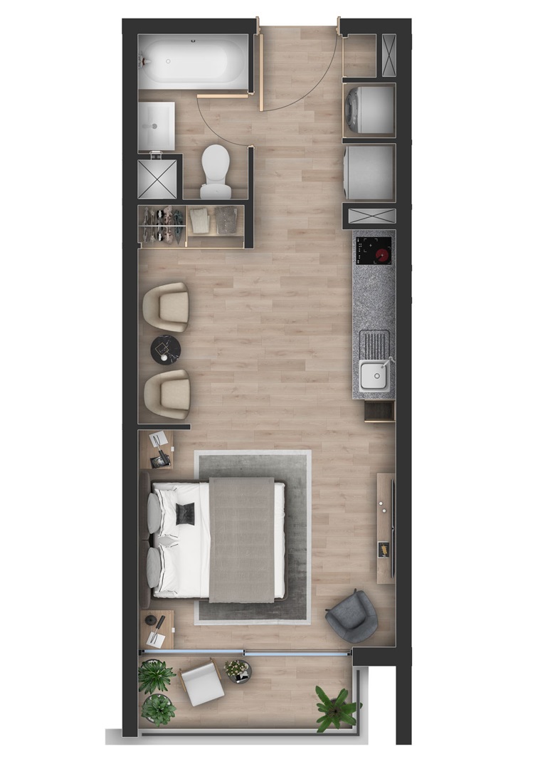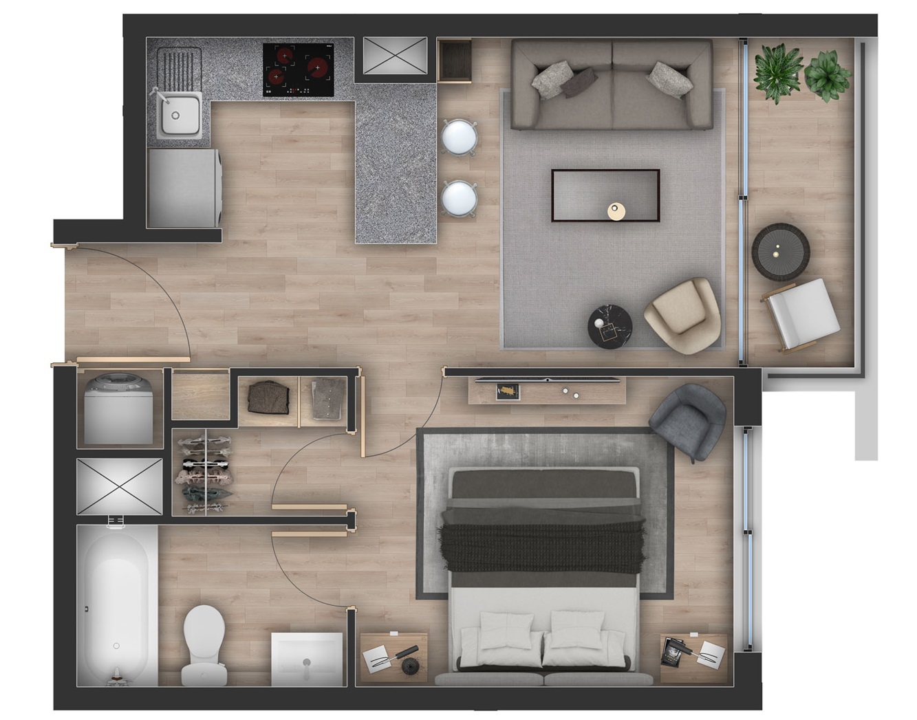 *Valor "desde" UF no incluye estacionamiento ni bodega, y corresponde al departamento de tipo studio, unidad 325, torre A, con fecha 1 de abril 2025. Stock de 1 unidad. Confirmar con su ejecutivo las características del proyecto a la hora de reservar su departamento.
